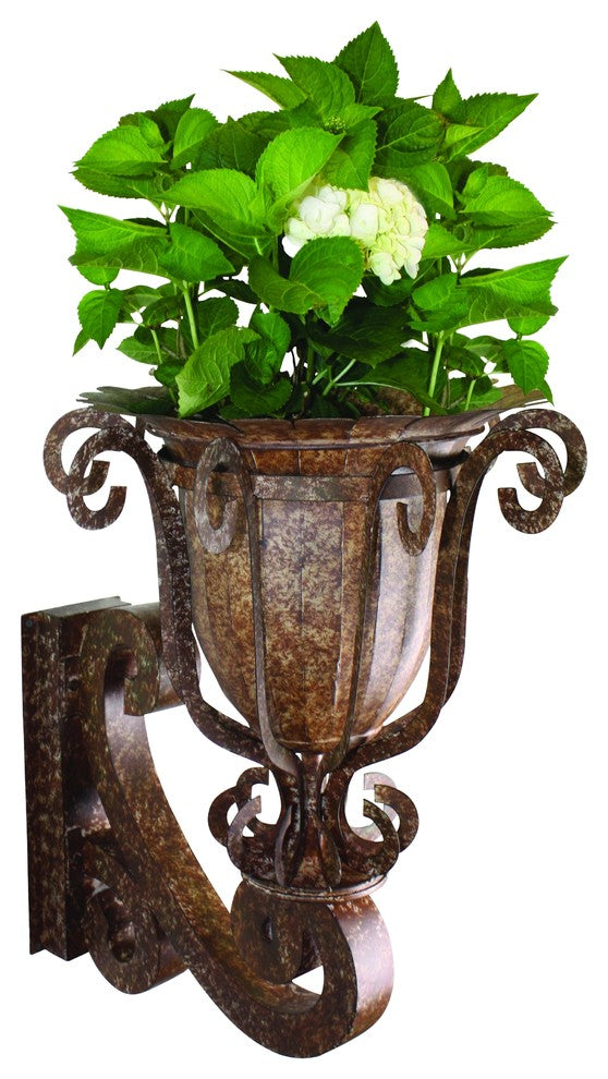 The Iron and Tole Wall Planter makes a beautiful addition to both the interior and exterior of your home. Made with iron and tole, this piece features brown and taupe hues that create a lovely textured look. Holding the actual planter are outward spirals that add interest to the overall look. The Iron and Tole Planter includes the wall bracket needed for mounting and also has a removable liner for easy exchange of plants.