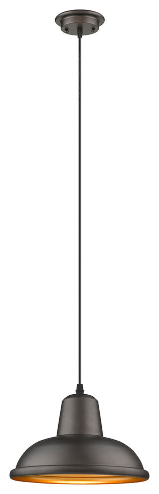 This 1-light pendant features an oil rubbed bronze finish that will complement many industrial and transitional decors. The clean lines of the steel frame and matching metal shade softens the light to create a warm ambiance for any space.