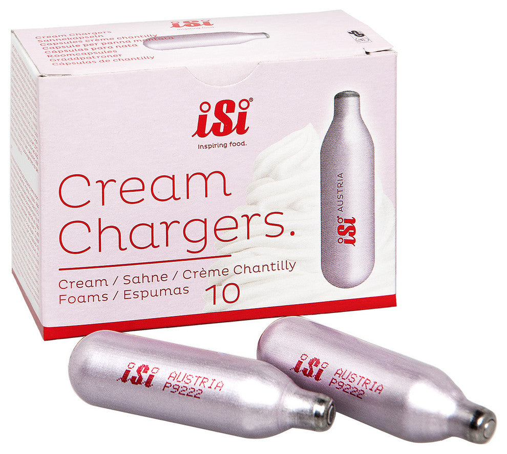 Professional cream chargers are designed for use in a cream whipper to whip cream, desserts, espumas, sauces, soups and rapid infusions. Always use iSi chargers in combination with iSi cream whippers and only in accordance with instructions. Non refillable, recyclable steel. Keep cool and dry. Do not use for any other purposes. Do not inhale. Misuse can be physically harmful and dangerous. Store at room temperature and keep dry, away from sunlight and temperatures above 122 degrees F.