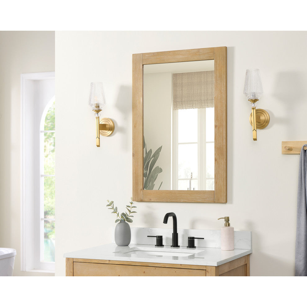 Ivy Rectangular Bathroom Wood Framed Wall Mirror, Light Brown, 24"