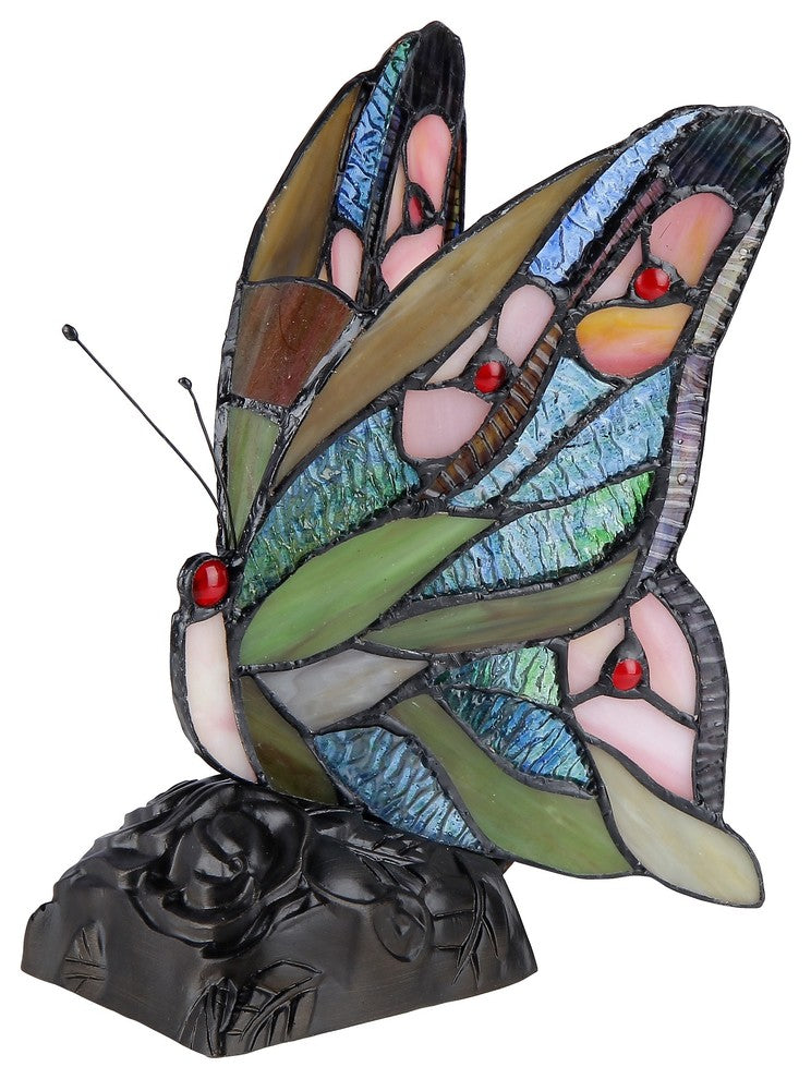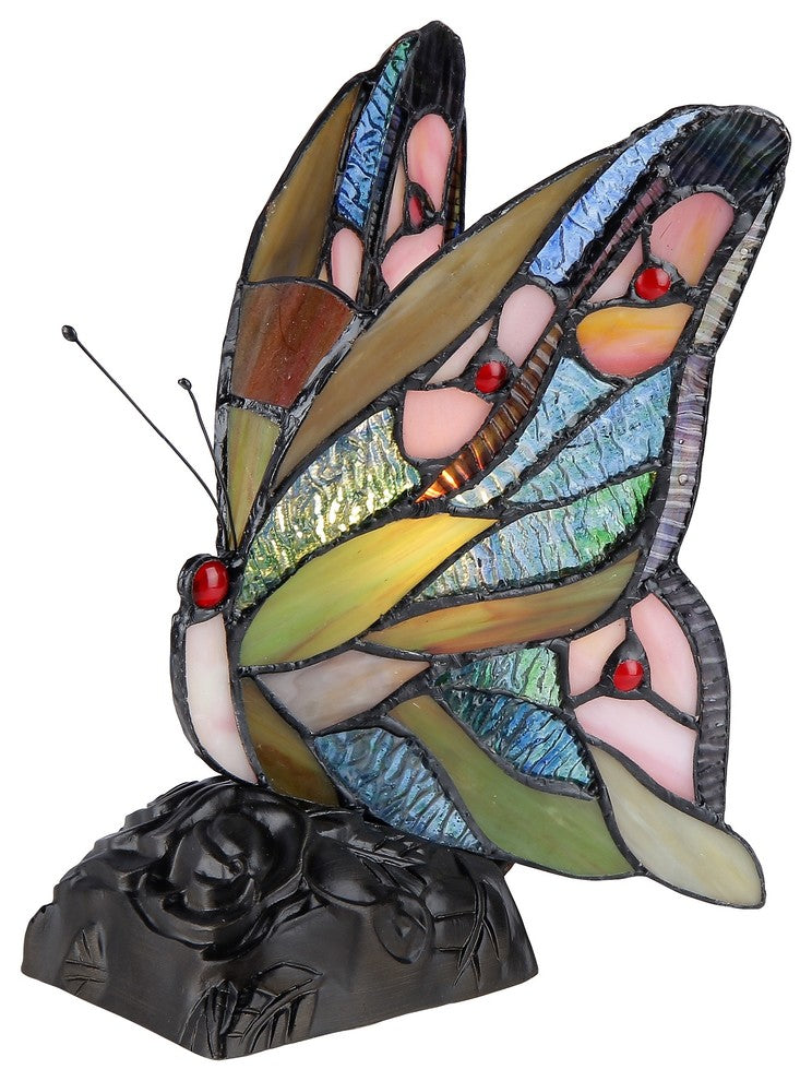 This accent desk lamp showcases the fine workmanship and detail of a butterfly gently perched on a rose. Made of top quality material. Individual cut glass pieces make up the butterfly. A wonderful addition to any room or office.