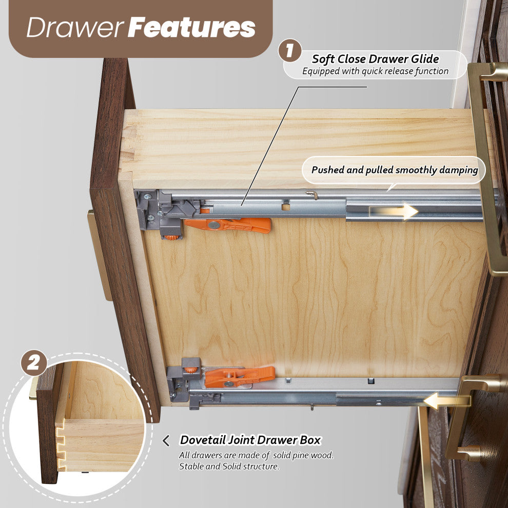 Featuring a solid wood cabinet with a unique crosshatch pattern, our Jakarta Series Vanity brings artistry and fine craftsmanship to your bathroom space. It''s elegant yet practical, satisfying your refined tastes while delivering the everyday functionality you need. Generous storage space is a hallmark of this piece, ensuring your essentials are neatly organized and easily accessible. The delicately veined quartz countertop is meticulously engineered for long-lasting beauty and durability.Features Durable Materials: Crafted from natural, imported solid wood for superior durability and long-lasting beauty.Stunning Finish: Available in an Oak Weathering Light Brown or Aged Dark Brown Oak finish to complement your decor, using environmentally friendly, water-based paint products.Ample Storage Space: 36 in. - One soft-closing doors with the fixed shelf and three sturdy, soft-closing dovetail drawers.42 in. - Two soft-closing doors with the fixed shelf and three sturdy, soft-closing dovetail drawers.48 in. - Two soft-closing doors with the fixed shelf and six sturdy, soft-closing dovetail drawers.60 in. Single Sink - Two soft-closing doors with the fixed shelf and six sturdy, soft-closing dovetail drawers.60 in. Double Sink - Two soft-closing doors with the fixed shelf and three sturdy, soft-closing dovetail drawers.72 in. - Four soft-closing doors with the fixed shelf and three sturdy, soft-closing dovetail drawers.84 in. - Four soft-closing doors with the fixed shelf and nine sturdy, soft-closing dovetail drawers.Offer plenty of space for all your toiletries. Built-in partitions in the drawer allow you to keep items neatly organized.High-Quality Hardware: Sturdy Matte Black or Brushed Gold handles offer a cool touch of style and contrast against the textured wood.Modern Top: The 0.8"-thick, silk white quartz stone top with 3.9" backsplash and sidesplash lends a fresh and contemporary look, with a high-gloss, anti-fouling coating that makes it scratch-resistant, wear-resistant, and easy to clean.Nano-Coated Basin: The ceramic undermount sink with overflow has a bright white Nano anti-fouling coating, and blends seamlessly with the stone vanity top.Practical Functionality: Built-in UL-listed power and USB outlets offer a practical way to power beauty and grooming appliances. Includes a convenient hair dryer organizer that keeps your favorite tool within easy reach.Faucet Type: Countertop has a pre-drilled, standard 1-3/8" faucet hole.Accessories: Does not include faucet, drain assembly, or P-trap. No Assembly Required: Freestanding bathroom vanity (without back panel) comes fully assembled for your convenience and ready to install. Designed for easy, no-hassle plumbing and faucet installation.Full Warranty: 1-Year Manufacturer Warranty--purchase with 100% peace of mind. Country of Origin: Vietnam.Vanity Dimensions:36 Inch:Cabinet: 35.2"W x 21.6"D x 33.1"HTop: 36"W x 22"D x 0.8"HOverall Dimensions: 36"W x 22"D x 33.9"H42 Inch:Cabinet: 41.2"W x 21.6"D x 33.1"HTop: 42"W x 22"D x 0.8"HOverall Dimensions: 42"W x 22"D x 33.9"H48 Inch:Cabinet: 47.2"W x 21.6"D x 33.1"HTop: 48"W x 22"D x 0.8"HOverall Dimensions: 48"W x 22"D x 33.9"H60 Inch (Single Sink and Double Sink):Cabinet: 59.2"W x 21.6"D x 33.1"HTop: 60"W x 22"D x 0.8"HOverall Dimensions: 60"W x 22"D x 33.9"H72 Inch:Cabinet: 71.2"W x 21.6"D x 33.1"HTop: 72"W x 22"D x 0.8"HOverall Dimensions: 72"W x 22"D x 33.9"H84 Inch:Cabinet: 83.2"W x 21.6"D x 33.1"HTop: 84"W x 22"D x 0.8"HOverall Dimensions: 84"W x 22"D x 33.9"HAll specifications are subject to change without prior notice.