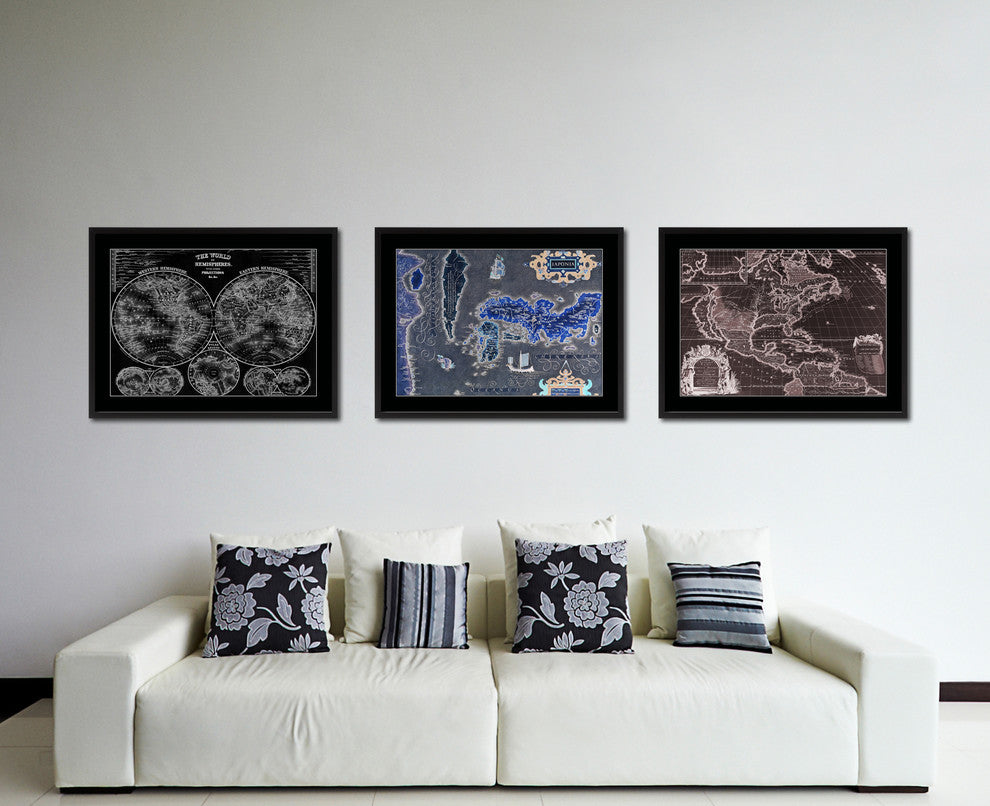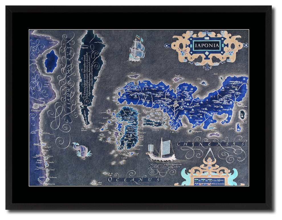 Japan Vintage Vivid Color Map Canvas, 28"x37"