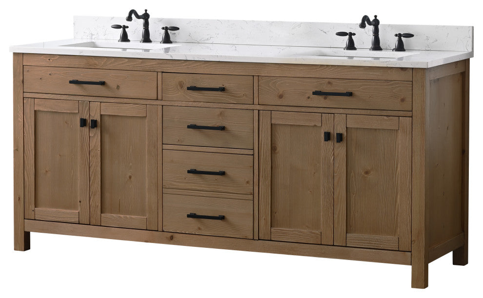 Jasper 72" Bathroom Vanity, Textured Natural, Ariston White Engineered Stone Top