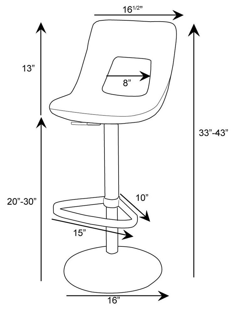 Bring some Jazz into your life with these bold bar stools. The fun shape with peek-a-boo cut-out adds dimension to the room, while the high back support suits your relaxation needs. The seat itself is padded with high-density foam and then covered in soft faux leatherette which is easy to clean and maintain. The brushed stainless steel base and footrest provide excellent support and functional design. With the 360 degree swivel and a gas lift that adjusts the height, the Jazz is the perfect fit for any countertop or bar table. The sleek brushed stainless steel trumpet base provides excellent support while being a great match to stainless kitchen appliances. Add some harmony to your home with the Jazz Bar Stool today! Also available with a round flat base. This product is suitable for indoor use only.