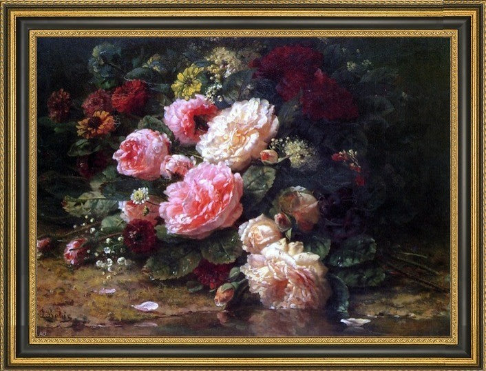 Jean Baptiste Robie Floral Still Life Framed Premium Canvas Print, 18"x27"