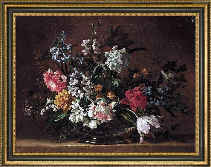 21" x 28" Jean-Baptiste Monnoyer Still-Life of Flowers framed premium canvas print reproduced to meet museum quality standards. Our Museum quality canvas prints are produced using high-precision print technology for a more accurate reproduction printed on high quality canvas with fade-resistant, archival inks. Our progressive business model allows us to offer works of art to you at the best wholesale pricing, significantly less than art gallery prices, affordable to all. This artwork is hand stretched onto wooden stretcher bars, then mounted into our 3 3/4" wide gold finish frame with black panel by one of our expert framers. Our framed canvas print comes with hardware, ready to hang on your wall. We present a comprehensive collection of exceptional canvas art reproductions by Jean-Baptiste Monnoyer.