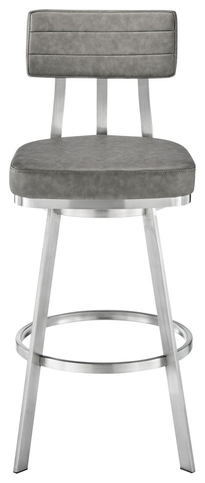 Jinab Swivel Bar Stool, Brushed Stainless Steel With Faux Leather, Gray
