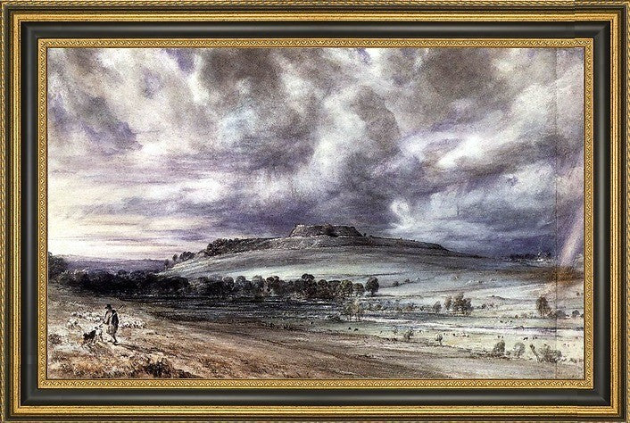 16" x 24" John Constable Old Sarum framed premium canvas print reproduced to meet museum quality standards. Our Museum quality canvas prints are produced using high-precision print technology for a more accurate reproduction printed on high quality canvas with fade-resistant, archival inks. Our progressive business model allows us to offer works of art to you at the best wholesale pricing, significantly less than art gallery prices, affordable to all. This artwork is hand stretched onto wooden stretcher bars, then mounted into our 3 3/4" wide gold finish frame with black panel by one of our expert framers. Our framed canvas print comes with hardware, ready to hang on your wall. We present a comprehensive collection of exceptional canvas art reproductions by John Constable.