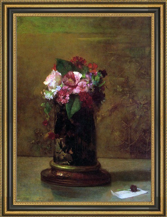 18" x 24" John La Farge Flowers in a Japanese Vase framed premium canvas print reproduced to meet museum quality standards. Our Museum quality canvas prints are produced using high-precision print technology for a more accurate reproduction printed on high quality canvas with fade-resistant, archival inks. Our progressive business model allows us to offer works of art to you at the best wholesale pricing, significantly less than art gallery prices, affordable to all. This artwork is hand stretched onto wooden stretcher bars, then mounted into our 3 3/4" wide gold finish frame with black panel by one of our expert framers. Our framed canvas print comes with hardware, ready to hang on your wall. We present a comprehensive collection of exceptional canvas art reproductions by John La Farge.