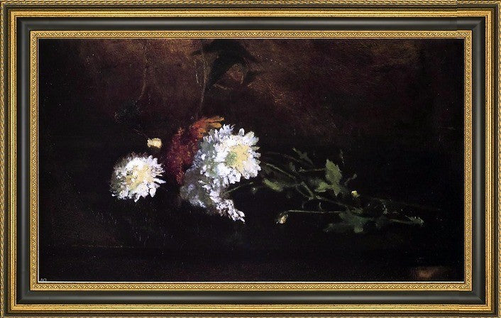 16" x 24" John La Farge Nosegay of Chrysanthemums framed premium canvas print reproduced to meet museum quality standards. Our Museum quality canvas prints are produced using high-precision print technology for a more accurate reproduction printed on high quality canvas with fade-resistant, archival inks. Our progressive business model allows us to offer works of art to you at the best wholesale pricing, significantly less than art gallery prices, affordable to all. This artwork is hand stretched onto wooden stretcher bars, then mounted into our 3 3/4" wide gold finish frame with black panel by one of our expert framers. Our framed canvas print comes with hardware, ready to hang on your wall. We present a comprehensive collection of exceptional canvas art reproductions by John La Farge.
