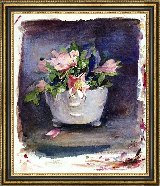 16" x 20" John La Farge Wild Roses in a White Chinese Porcelain Bowl framed premium canvas print reproduced to meet museum quality standards. Our Museum quality canvas prints are produced using high-precision print technology for a more accurate reproduction printed on high quality canvas with fade-resistant, archival inks. Our progressive business model allows us to offer works of art to you at the best wholesale pricing, significantly less than art gallery prices, affordable to all. This artwork is hand stretched onto wooden stretcher bars, then mounted into our 3 3/4" wide gold finish frame with black panel by one of our expert framers. Our framed canvas print comes with hardware, ready to hang on your wall. We present a comprehensive collection of exceptional canvas art reproductions by John La Farge.
