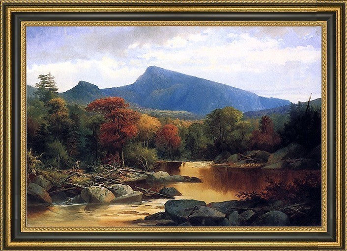 18" x 27" John Mix Stanley Mount Carter - Autumn in the White Mountains framed premium canvas print reproduced to meet museum quality standards. Our Museum quality canvas prints are produced using high-precision print technology for a more accurate reproduction printed on high quality canvas with fade-resistant, archival inks. Our progressive business model allows us to offer works of art to you at the best wholesale pricing, significantly less than art gallery prices, affordable to all. This artwork is hand stretched onto wooden stretcher bars, then mounted into our 3 3/4" wide gold finish frame with black panel by one of our expert framers. Our framed canvas print comes with hardware, ready to hang on your wall. We present a comprehensive collection of exceptional canvas art reproductions by John Mix Stanley.