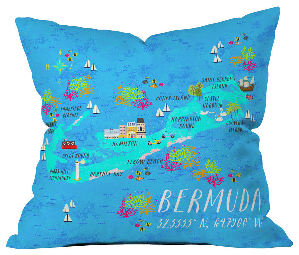 Joy Laforme Bermuda Map Outdoor Throw Pillow