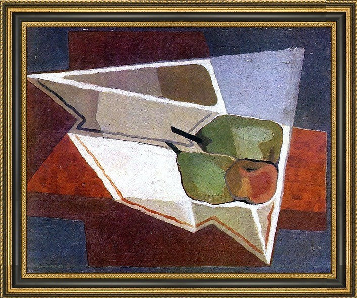 16" x 20" Juan Gris Fruit with Bowl framed premium canvas print reproduced to meet museum quality standards. Our Museum quality canvas prints are produced using high-precision print technology for a more accurate reproduction printed on high quality canvas with fade-resistant, archival inks. Our progressive business model allows us to offer works of art to you at the best wholesale pricing, significantly less than art gallery prices, affordable to all. This artwork is hand stretched onto wooden stretcher bars, then mounted into our 3 3/4" wide gold finish frame with black panel by one of our expert framers. Our framed canvas print comes with hardware, ready to hang on your wall. We present a comprehensive collection of exceptional canvas art reproductions by Juan Gris.