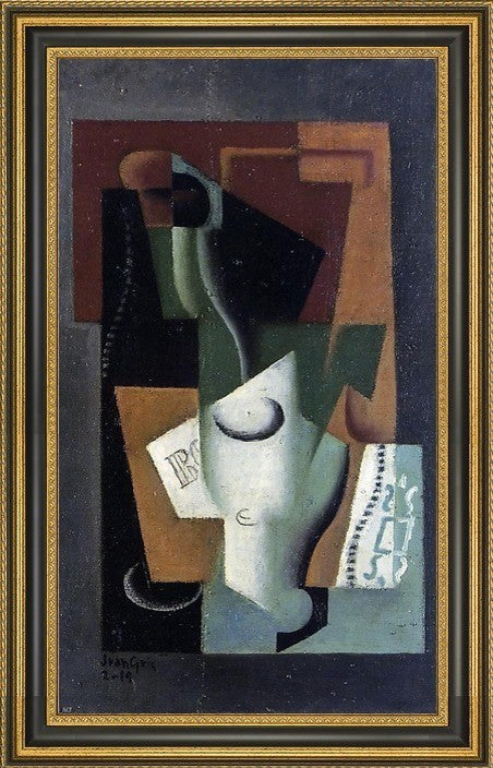Juan Gris Glass and Bottle - 16" x 24" Framed Premium Canvas Print
