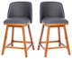 Julia Set of 2 24" Upholstered Counter Stools-Silver Nailhead Trim, Wood Frames, Gray Leathersoft/Walnut