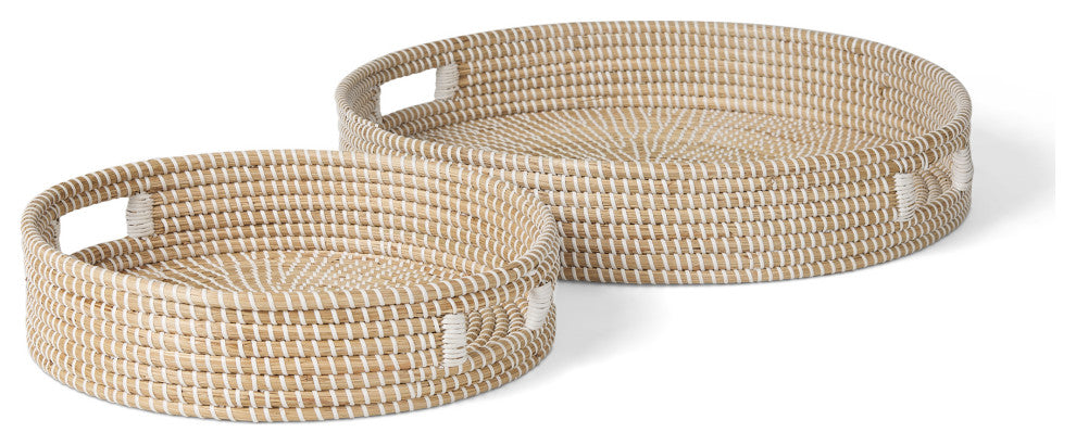 Kalama Set of 2 Large Round Seagrass Trays With Handles