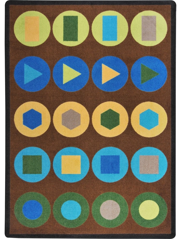 Geometric shapes encircled in vibrant colors make this carpet unique and engaging. The simplicity of the design compliments the overall learning environment and provides a comfortable space where children can gather on the floor.