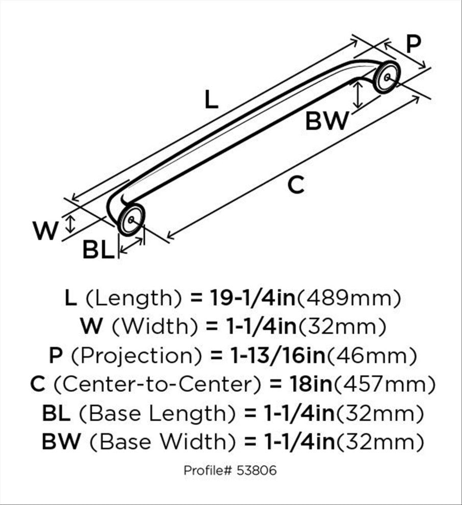 The Amerock BP53806BBZ Kane 18 in (457 mm) Center-to-Center Appliance Pull is finished in Golden Champagne. Timeless beauty complements utilitarian design in the Kane collection, creating a classic and understated look that never goes out of style. Warm and inviting without being brassy and featuring hints of silver in reflective light, this attractive hue elevates designs with enviable versatility. Use for a soft and elegant touch on lighter finishes or as a contrasting pop against darker finishes. Founded in 1928, Amerock''s award-winning home solutions including decorative and functional cabinet hardware, bath accessories, decorative hooks and wall plates have built the company''s reputation for chic design accessories that inspire homeowners to express their personal style. Amerock offers a variety of styles and finishes at affordable prices that add the perfect finishing touch to any room