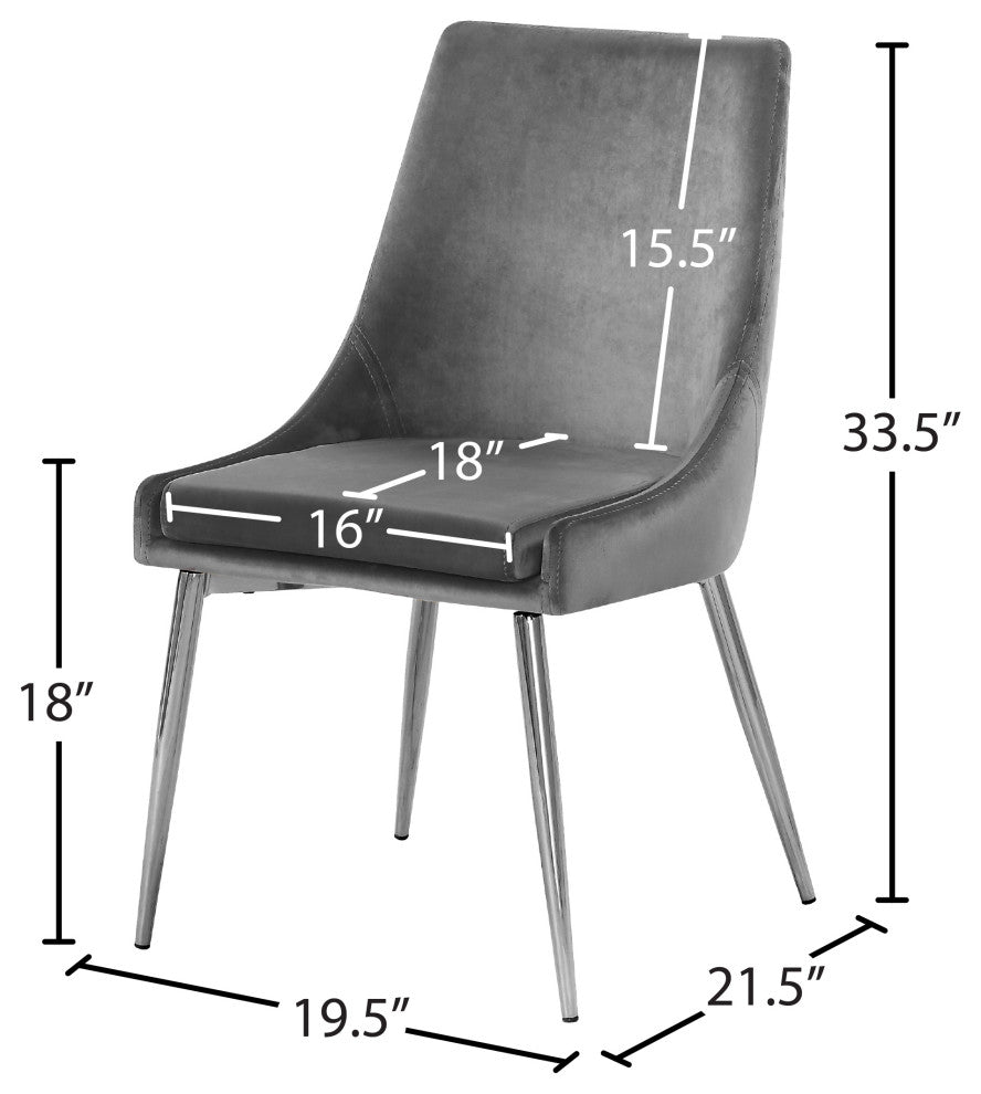 Karina Velvet Dining Chairs, Set of 2, Gray, Chrome Base