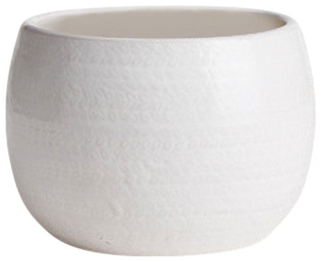 With a high-gloss, cyan-thickly-applied glaze, this pot shows up in any setting. A rounded profile and subtle pattern complete the look. Pairs well with ferns and florals alike