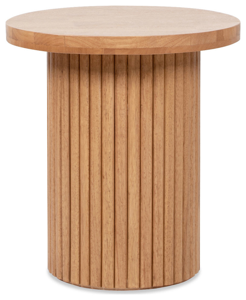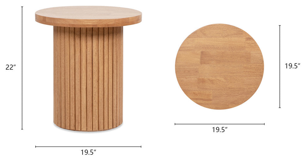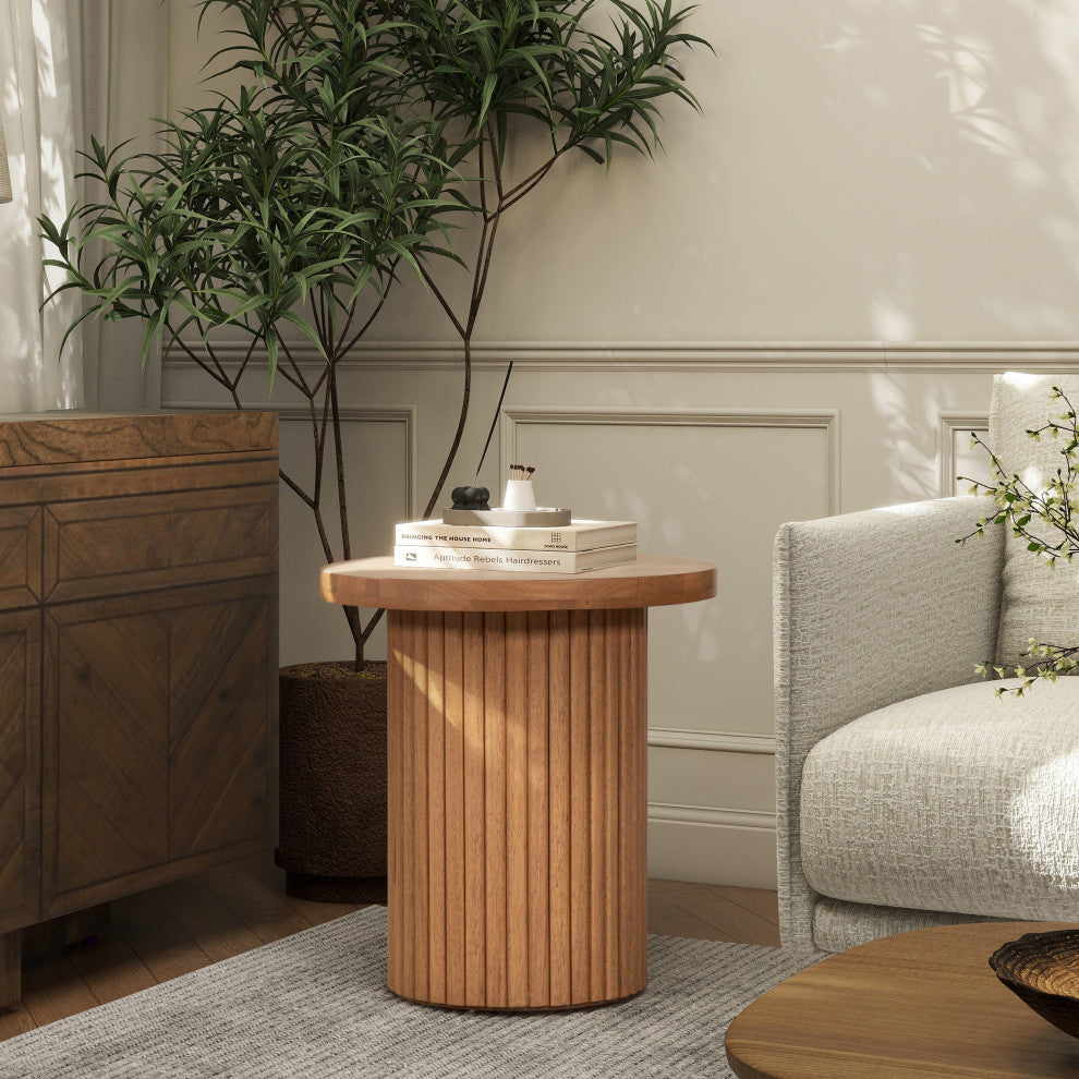 Kenzie 19.5" Fluted Pillar Round Accent Side Table, Light Natural Brown