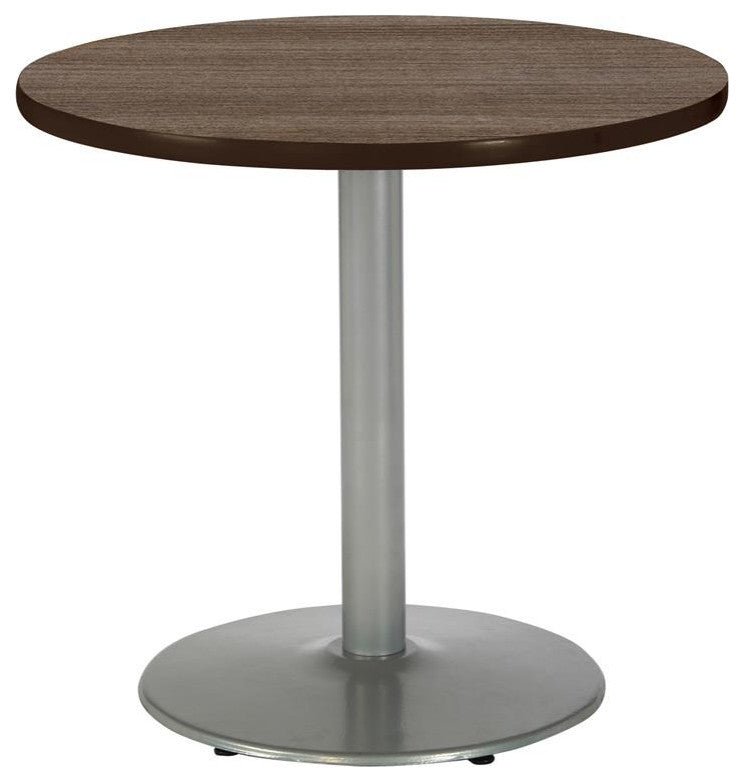 KFI Mode 30" Round Breakroom Table with Teak Round Silver Base Counter Height
