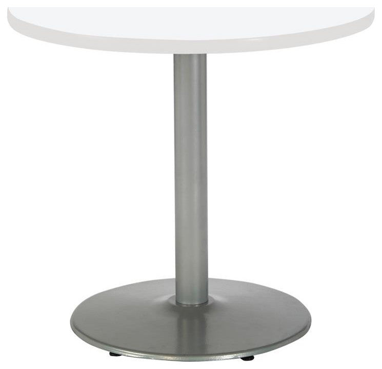 KFI Mode 30" Round Breakroom Table with White Round Silver Base Counter Height