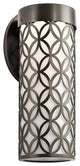 This LED outdoor wall lantern from the Cidney collection features beautiful woven stamped metalwork that lets the light filter through in fanciful patterns. The Architectural Bronze finish perfectly complements the Satin Etched glass.