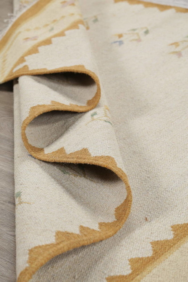 A Beautiful Genuine Indian Kilim 6x8 area rug is Hand Woven by skillful weavers in India with 100% Wool Material. This rug is in New, First Quality condition. Dimensions are 7'' 9'''' X 5'' 6'''' in foot and 236 X 168 in centimeter. The primary color is Beige & Ivories. This rug comes with free shipping and free 30 days return for full refund with no question asked. At Rugsource we offer 100% Satisfaction guaranteed at the wholesale price so everyone can have a beautiful rug in their house to bring warmth and joy by adding a handmade rug.