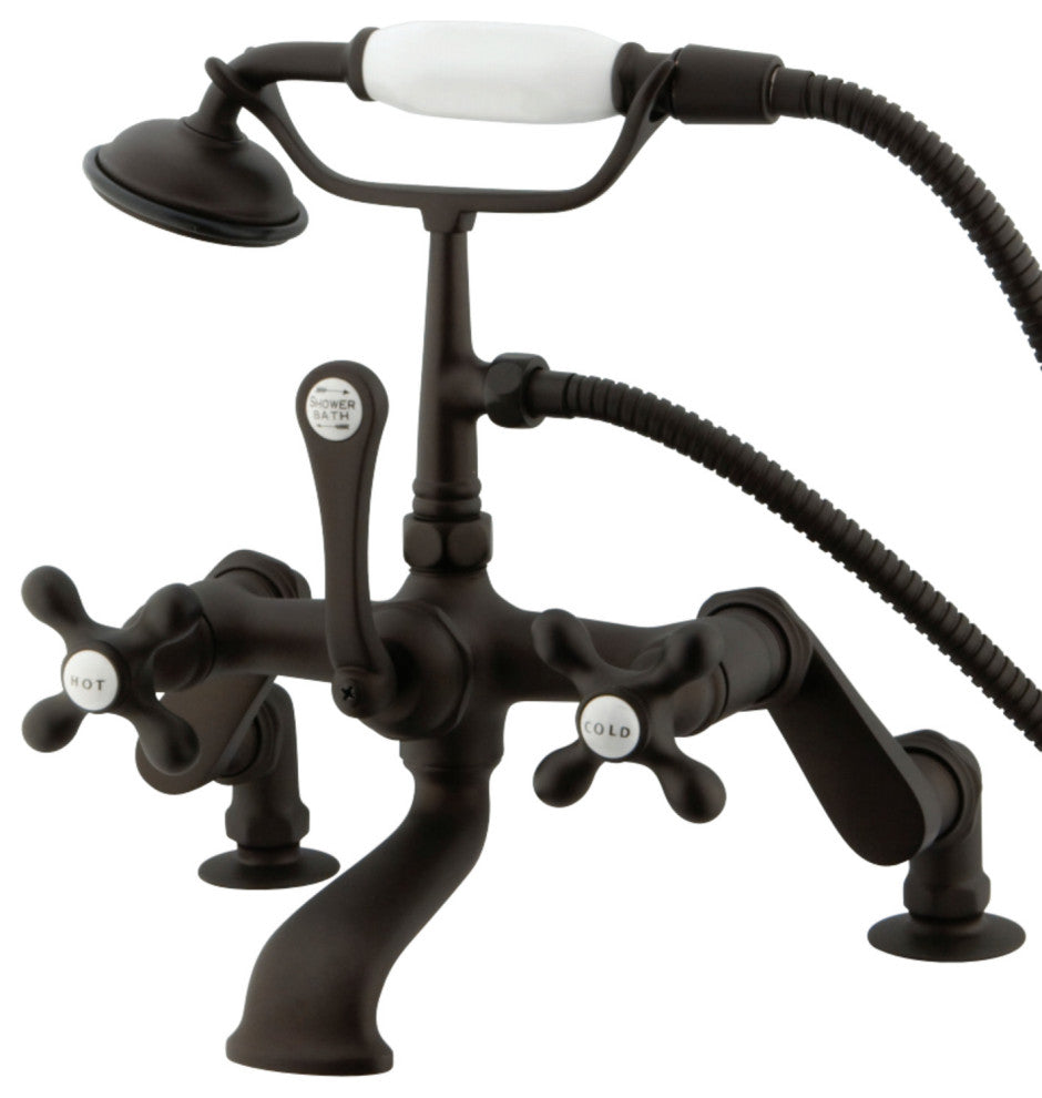 This clawfoot tub filler is constructed of high quality brass to ensure reliability and durability. Its premier finish resists tarnishing and corrosion. All mounting hardware is included and standard US plumbing connections are used. 10-3/4" spout reachDeck mount with 3" to 12" spread1/4-turn ceramic disk cartridgeVacuum breaker backflow preventionStandard US plumbing connectionsMax 2.0 GPM/7.6 LPM Flow Rate at 80 PSI On Hand ShowerCompliant with California Energy Commission Title 20