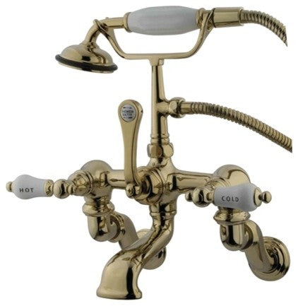 Kingston Brass Wall Mount Clawfoot Tub Faucet With Hand Shower, Polished Brass