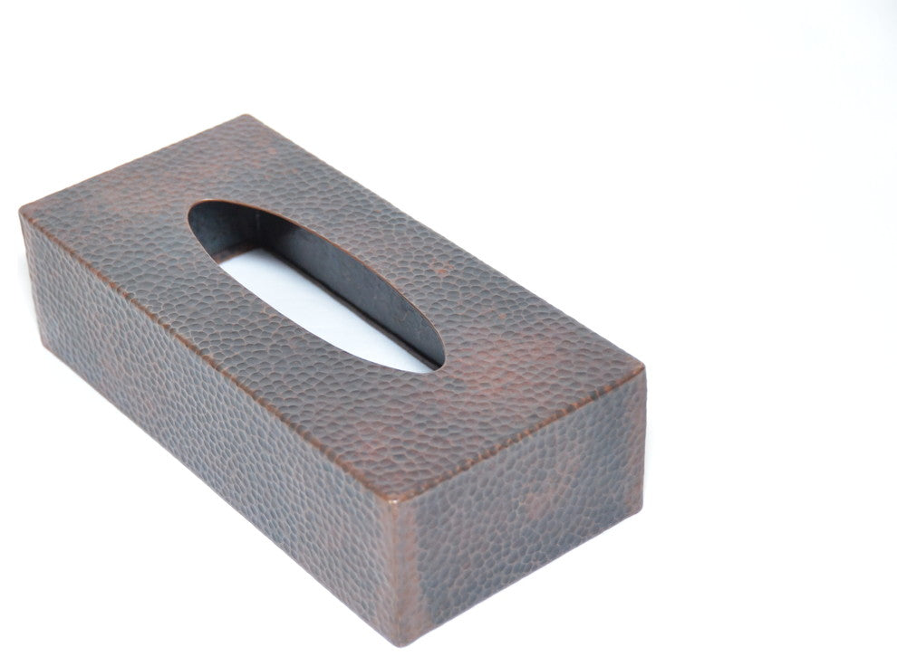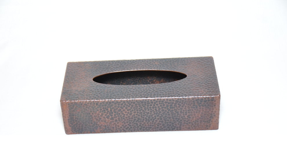 KLEENEX RECTANGULAR COVER SpecificationsShape: rectangularDimensions: 10"� X 5"� X 3"�Shipping: free shipping (expect Hawaii and Alaska)Oil rubbed finishMade in Mexico100% Hand MadeNo more long waits for your beautiful handmade copper sink. Sinks are already base in The United States, ready to be ship to your new project.Tesoro Tarasco hammered copper sinks are made from 100% recycled copper. The patina is naturally made by a fire processing, and changes overtime.When you buy a copper sink form Tesoro Tarasco, you"™re not only getting a unique copper sink, The Purepecha people (natives of the state) were believed to be some of the most accomplished craftsmen of Mexico. Once colonization began, the land was divided into craft-oriented villages, each skilled in either wood, cloth, pottery, copper, and other hand crafts. One of the villages skilled in copper was (and still is) Santa Clara del Cobre. have been working with copper for a century and have been passed down from father to son for generations. A typical copper sink takes several days, and many thousands of hammers strikes to create it. When you purchase from us, you''re not only buying a beautiful sink, but you"™re also getting a product with an ancient technique. FUN FACT!!!! A huge advantage of a copper farmhouse sink is the natural antibacterial properties of copper. The EPA (Environmental Protection Agency) has confirmed that copper is the first solid metal to possess antimicrobial properties effective in killing harmful bacteria living on touch surfaces, it also kills covid-19 in 40 minutes max.THANK YOU FOR YOUR VISIT AND THANKS FOR HELPING TO KEEP THIS TRADITION ALIVE, BY BUYING OUR PRODUCTS.
