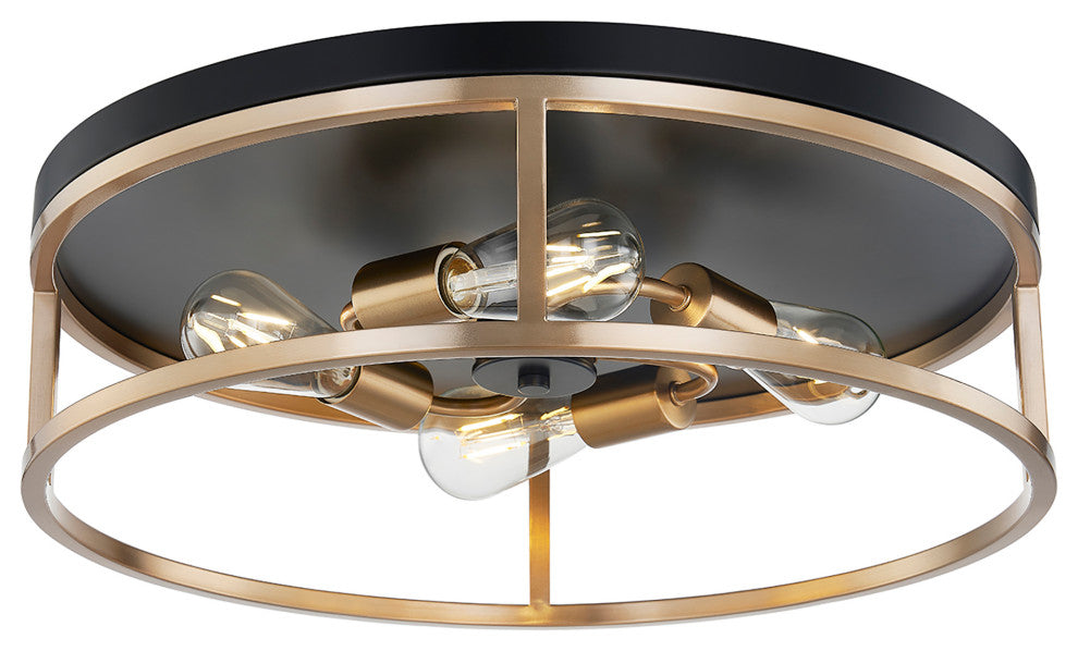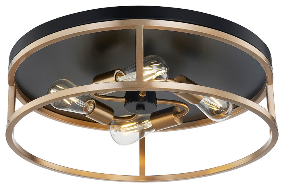 Knox Round Flush-Mount 4-Light Matte Black/Brass