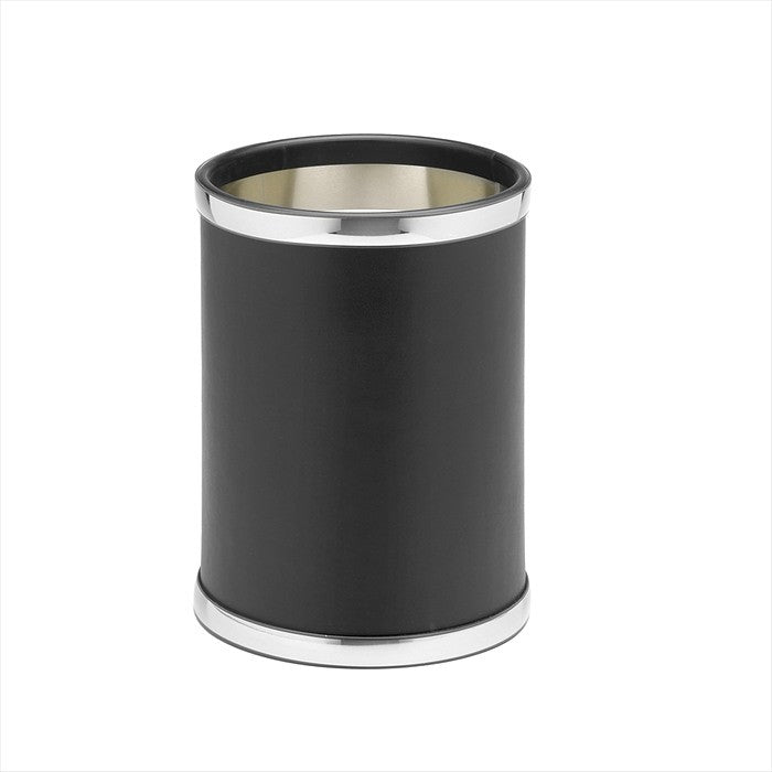 Kraftware Sophisticates Round Wastebasket, Black With Polished Chrome