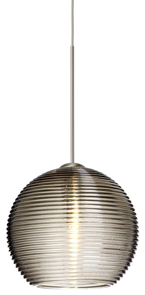 The Kristall is a transparent globe shape with distinctive ridges that fits gracefully into contemporary spaces. Our Trans-Smoke glass is a colored transparent blown glass. The seductive glow has a low key harmonious display that exudes a warm mood. When lit the glass is vitalizing as well as stylish. This blown glass is handcrafted by a skilled artisan utilizing century-old techniques passed down from generation to generation. The 12V cord pendant fixture is equipped with a 10'' braided coaxial cord with Teflon jacket and a low profile flat monopoint canopy. These stylish and functional luminaries are offered in a beautiful Satin Nickel finish