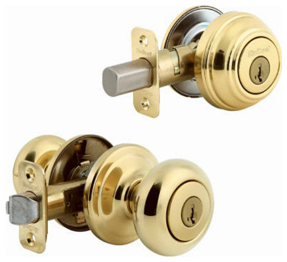 Kwikset® 991J-3-SMT-CP-K4 Juno Knob & Single Cylinder Combo Pack, Polished Brass