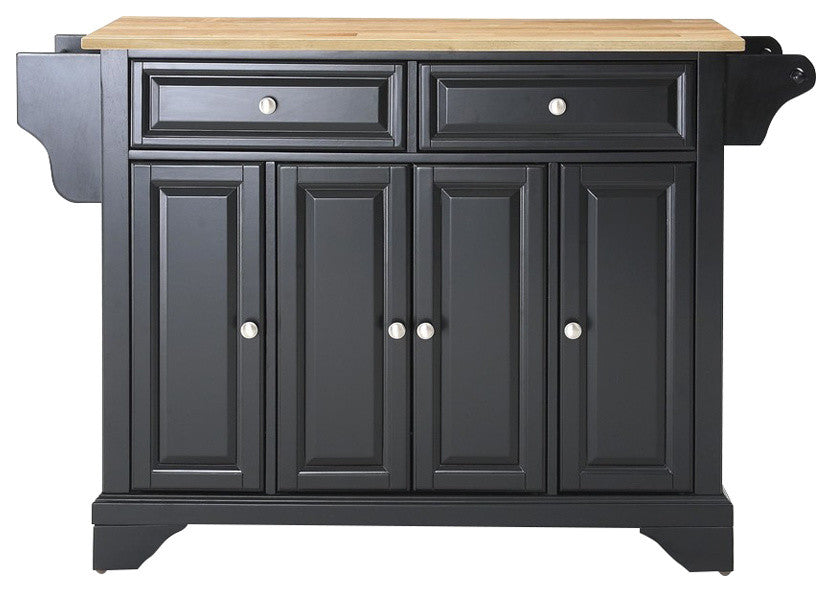 Constructed of solid hardwood and wood veneers, this kitchen island is designed for longevity. The Beautiful raised panel doors and drawer fronts provide the ultimate in style to dress up your kitchen. Two deep drawers are great for anything from utensils to storage containers. Behind the four doors, you will find adjustable shelves and an abundance of storage space for things that you prefer to be out of sight. Style, function, and quality make this kitchen island a wise addition to your home.