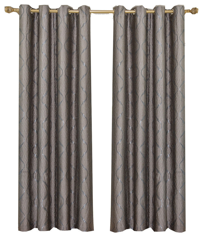 Laguna 100% Polyester Jacquard Grommet Curtains, Set of 2, Taupe, 104"x96"