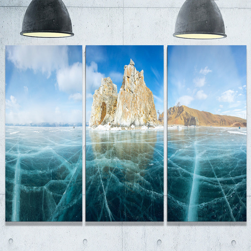 "Lake Baikal Ice and Rocks Panorama" Metal Wall Art, 3 Panels, 36"x28"