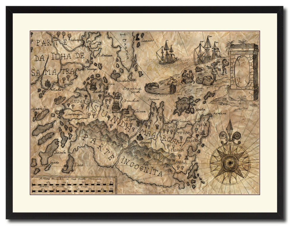 Land Vintage Map Print On Canvas With Picture Frame 28" X 37"
