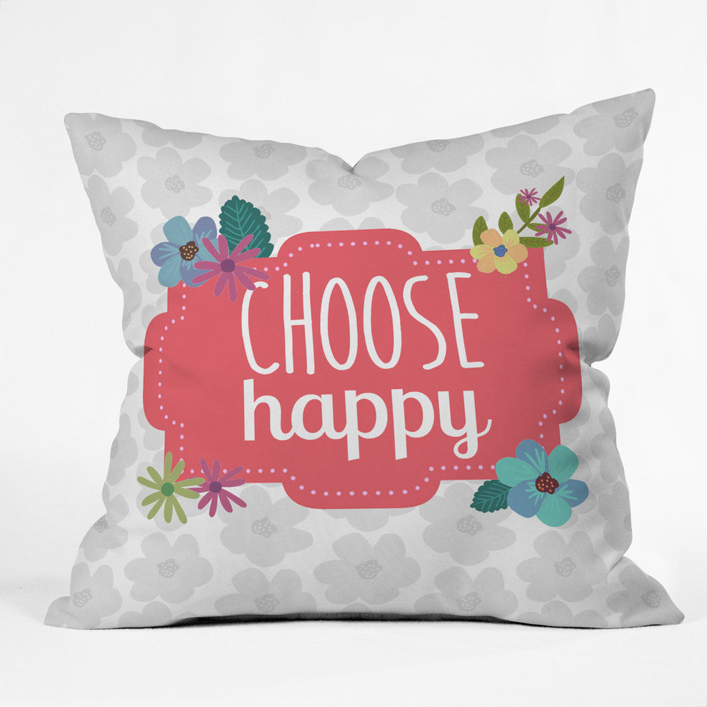 Lara Kulpa Choose Happy Outdoor Throw Pillow, 18x18x5