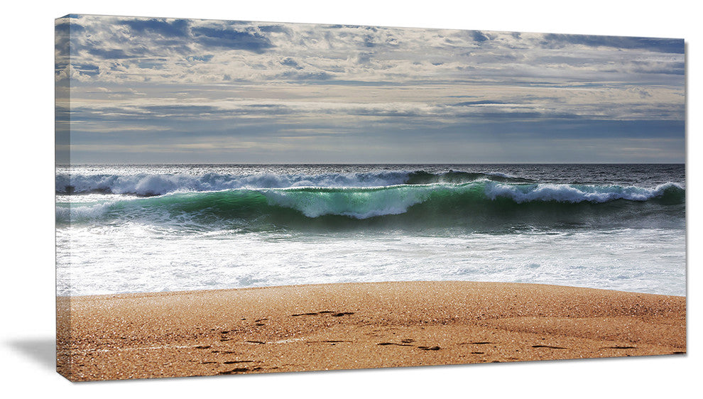 The Large Blue Waves and Blue Sky canvas art print is sure to make an impression on anyone who sees it. This artwork is gallery wrapped around a 1-inch solid wood frame and arrives carefully packaged and entirely ready to hang on the wall. Design Art only uses the highest resolution and pigments to ensure a crisp colorful print that is never faded or pixelated. This artwork is sure to be a conversation starter in any home or office.