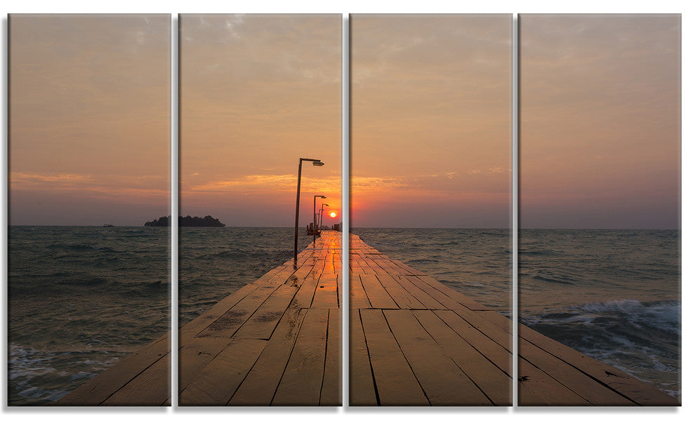 "Large Pier At Koh Rong Island" Modern Beach Canvas Art Print, 4 Panels, 48"x28"