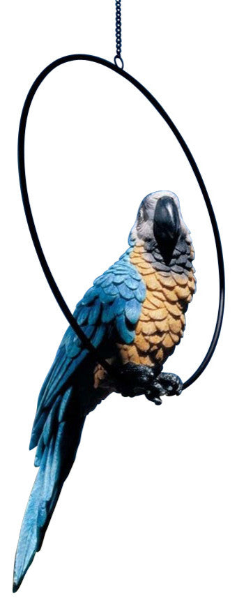 Create your own colorful tropical paradise with our "Polly" parrot hanging from her own metal ring and chain. Perfect hung near the pool, patio or sunroom, this life-size designer resin sculpture is meticulously hand-painted in all the colors of the rainbow. A Design Toscano exclusive. 15"Wx5"Dx17.5"H. 4 lbs.