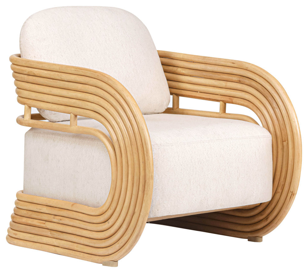 Lauretta Cream Fabric and Natural Rattan Accent Chair
