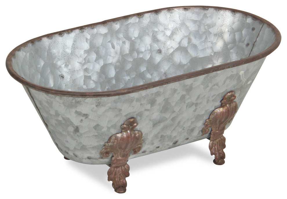 Accent your home and space with a wonderful décor piece. Stylish décor pieces have found their way onto entryway tables, dining tables, shelves and any space that needs a finishing touch or bit of flair. This piece features a farmhouse styled bathtub. With its galvanized metal construction and unique look, this piece will be a eye-catching addition to any room it is in.SKU: 5129S-GV Measurements: L: 10" x W: 5.5" x H: 4.5"Available Size Options:-SKU: 5018L-GV L: 24.75" x W: 13.75" x H: 10.5"-SKU: 5018S-GV L: 20" x W: 11" x H: 8.75" -SKU: 5129L-GV L: 12" x W: 6.5" x H: 5.25"-SKU: 5129S-GV L: 10" x W: 5.5" x H: 4.5"