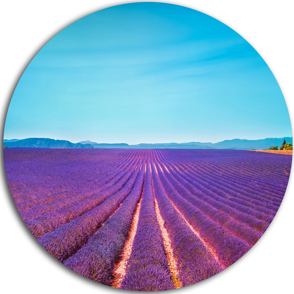 Lavender Flowers And Clear Sky, Landscape Disc Metal Artwork, 36"