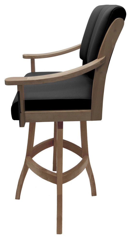 Leather Swivel Wood Bar Stool Casa on S-Base, Black Leather on Cashew, 34"